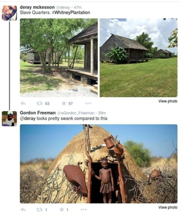 Photographic evidence proves that African slaves in America 200 years ago had a better life than Africans in Africa have now. Deray never even attempted to respond to this. Because what response is there?