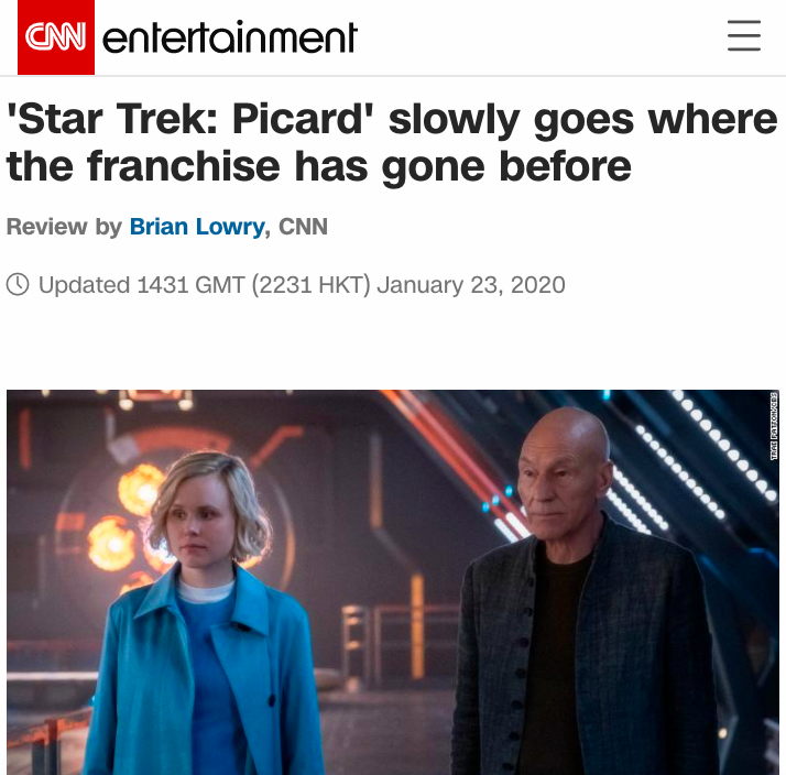 This is a situation where CNN – which also publishes articles about Star Trek: Picard – is calling for me to be shut down because I had the most popular article on Star Trek: Picard on Google News.
