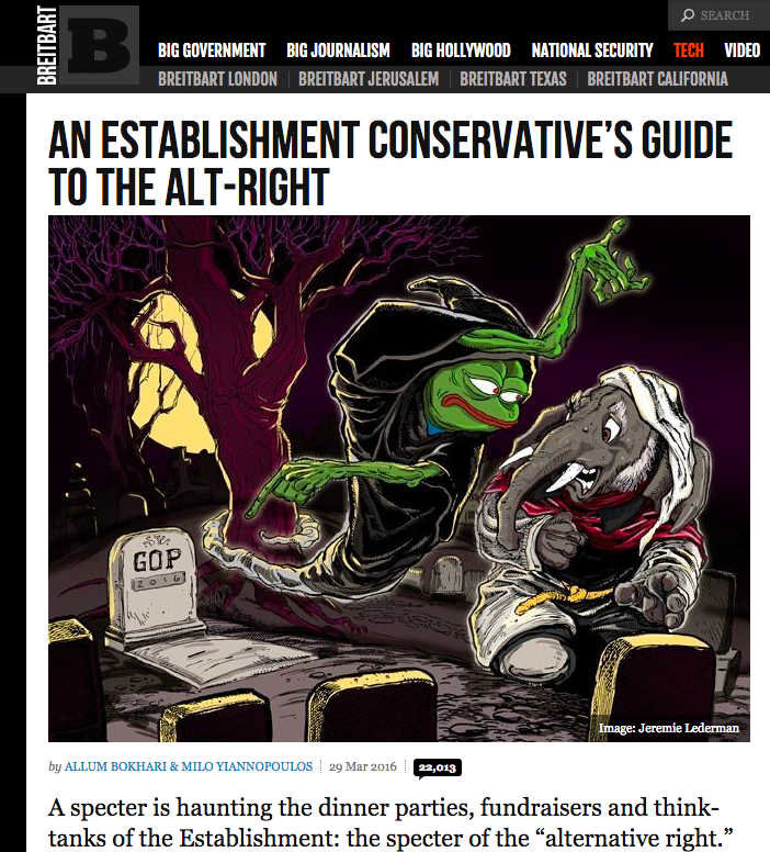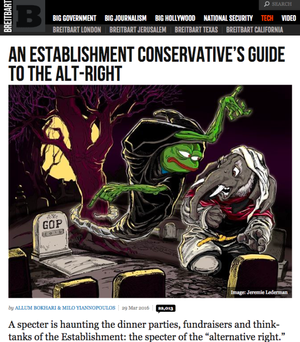 And he kept making headlines for a while with his online antics and the article he had ghost-written on Breitbart about the Alt-Right.