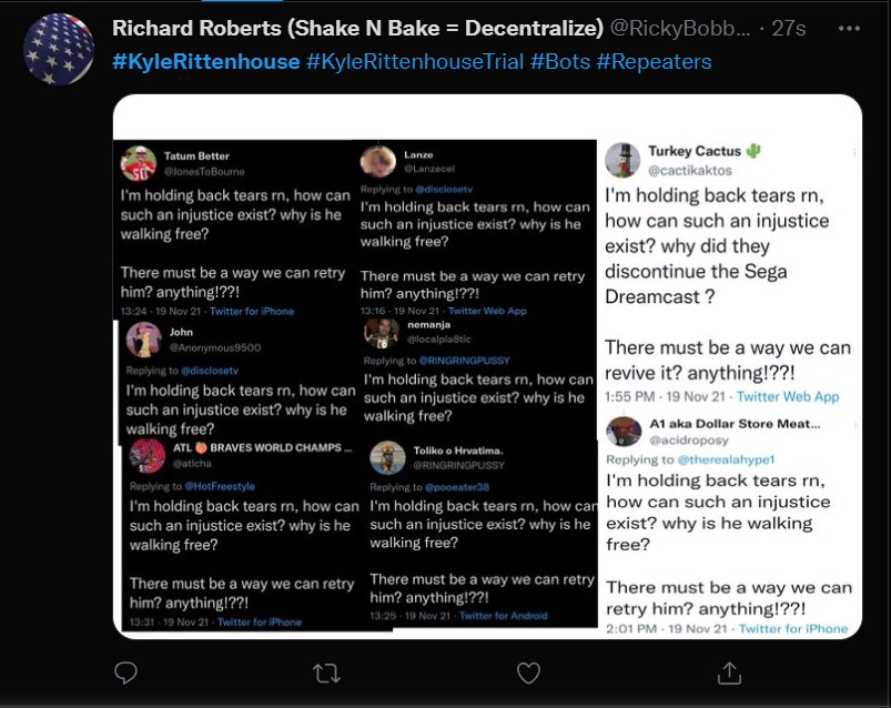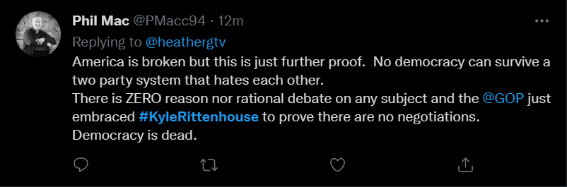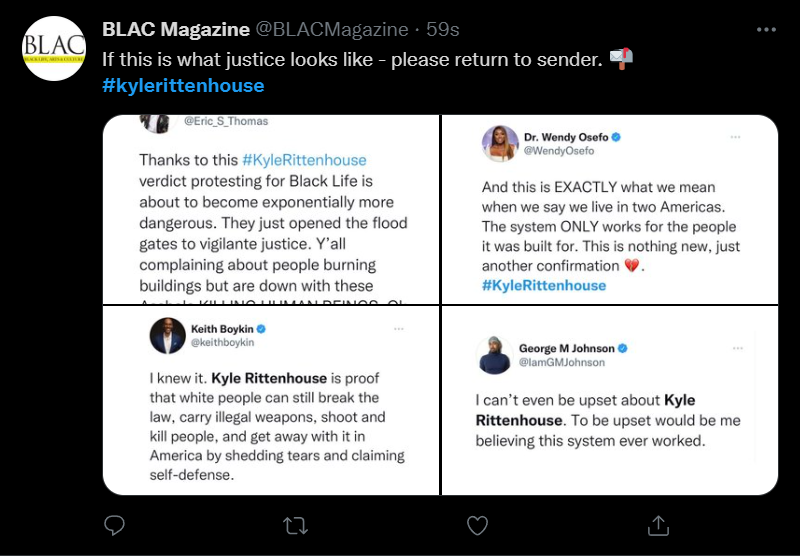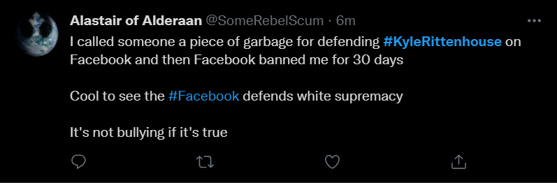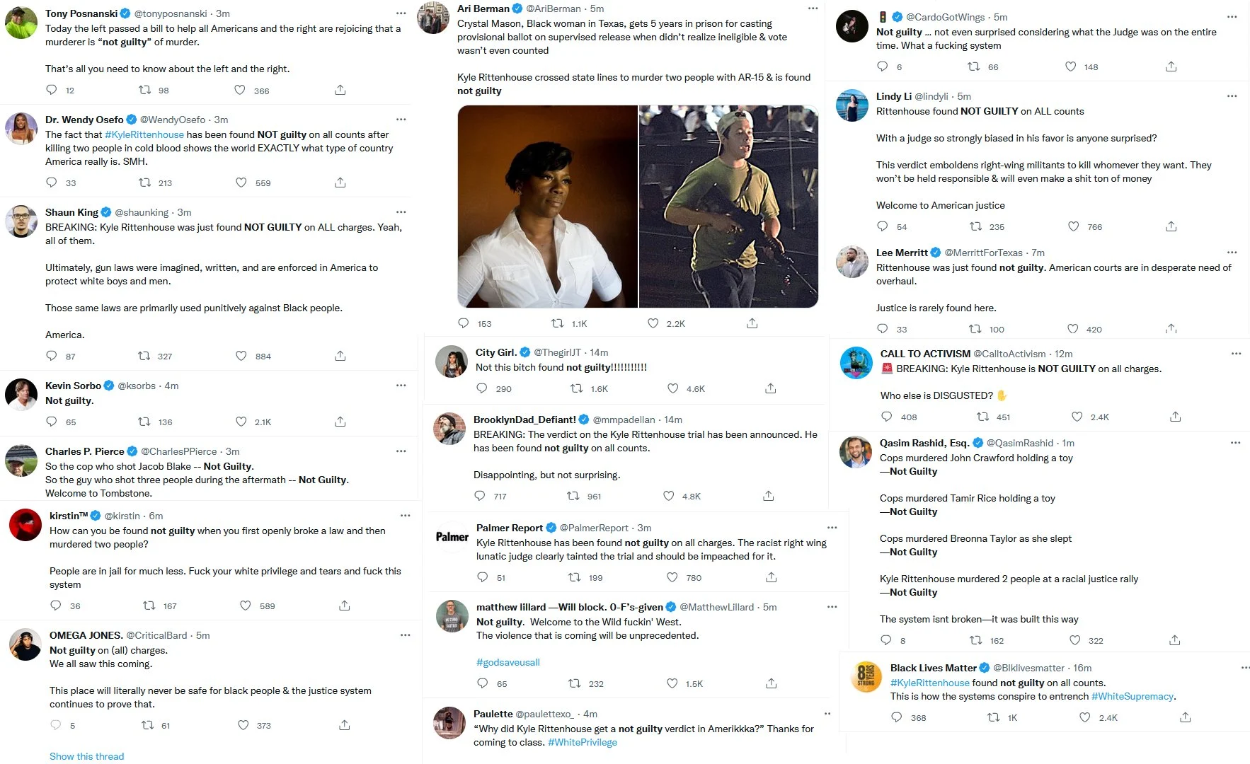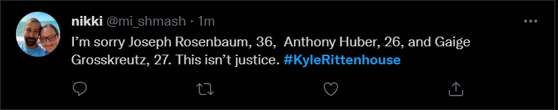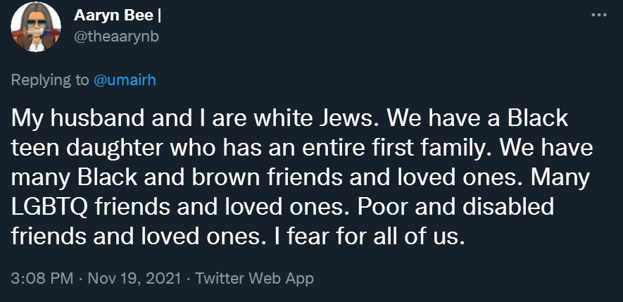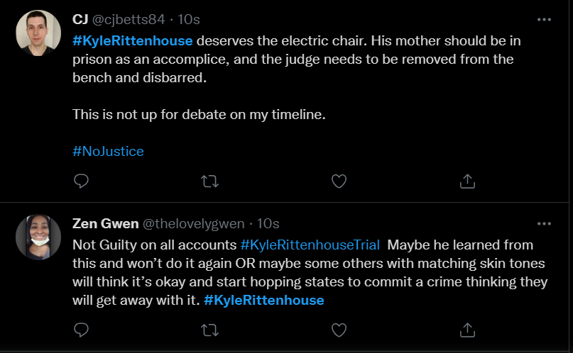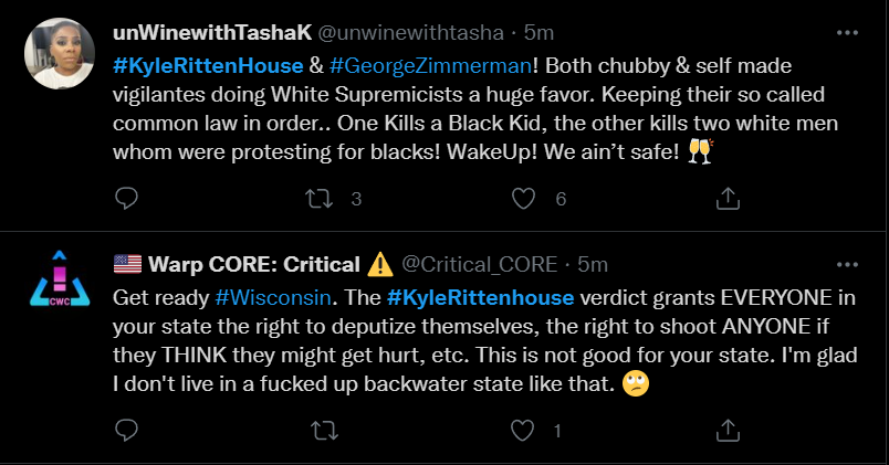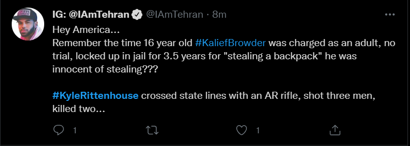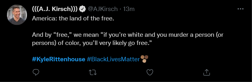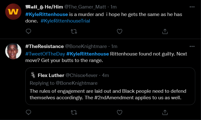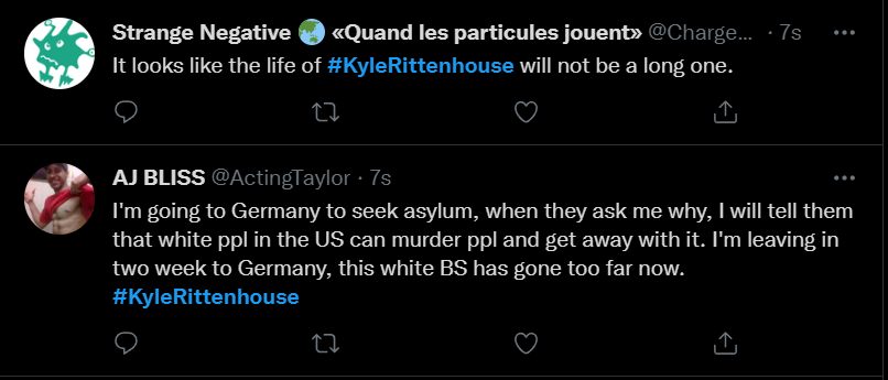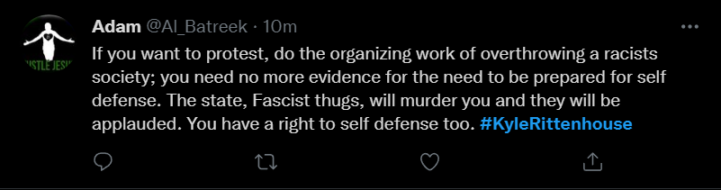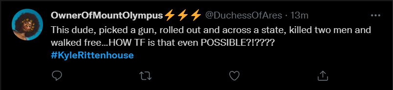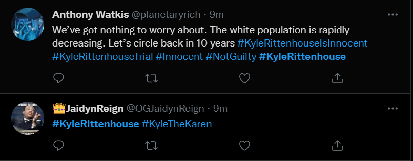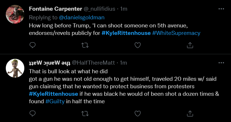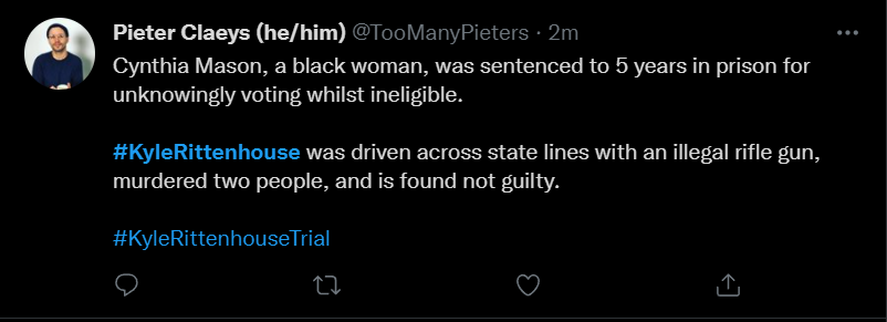 These people think that Kyle Rittenhouse was a white supremacist terrorist who showed up at a peaceful protest with an assault rifle and opened fire on a crowd, killing three blacks, and then the judge let him off because he is a white supremacist Trump supporter. The jury were all also white supremacists, and think black lives don’t matter. They hate the color of the skin of the blacks that Kyle murdered.