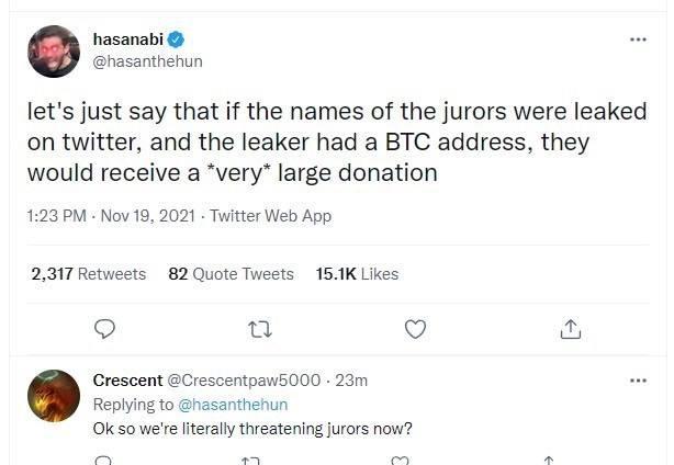 That is DNC operative Hasan Piker calling for jurors to be doxed and presumably assassinated.