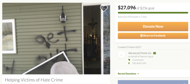 The words ‘Get out‘ were spray painted on the outside of the Delano property, while the inside was adorned with swastikas and the n-word.