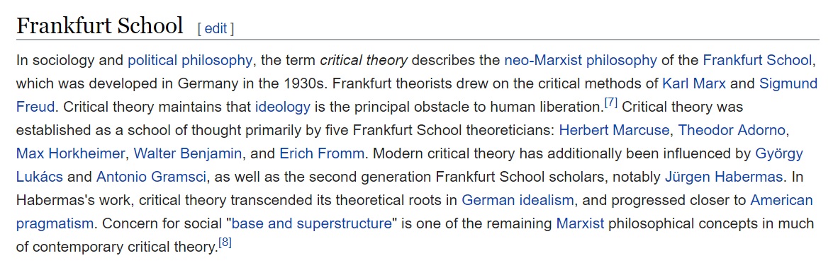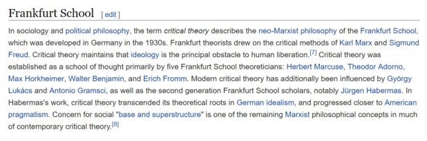 “Critical theory” is a purely Jewish attack on Western civilization. It’s the product of the Frankfurt school, and what Kevin McDonald alludes to with the title of his book “The culture of critique.”