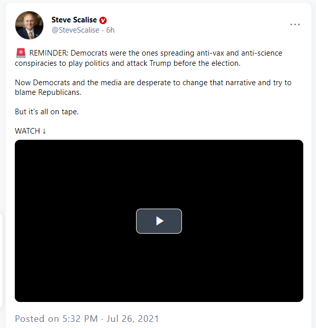 Meanwhile, House Republican Leader Steve Scalise was found on Falun Gong social media platform GETTR saying this same thing.