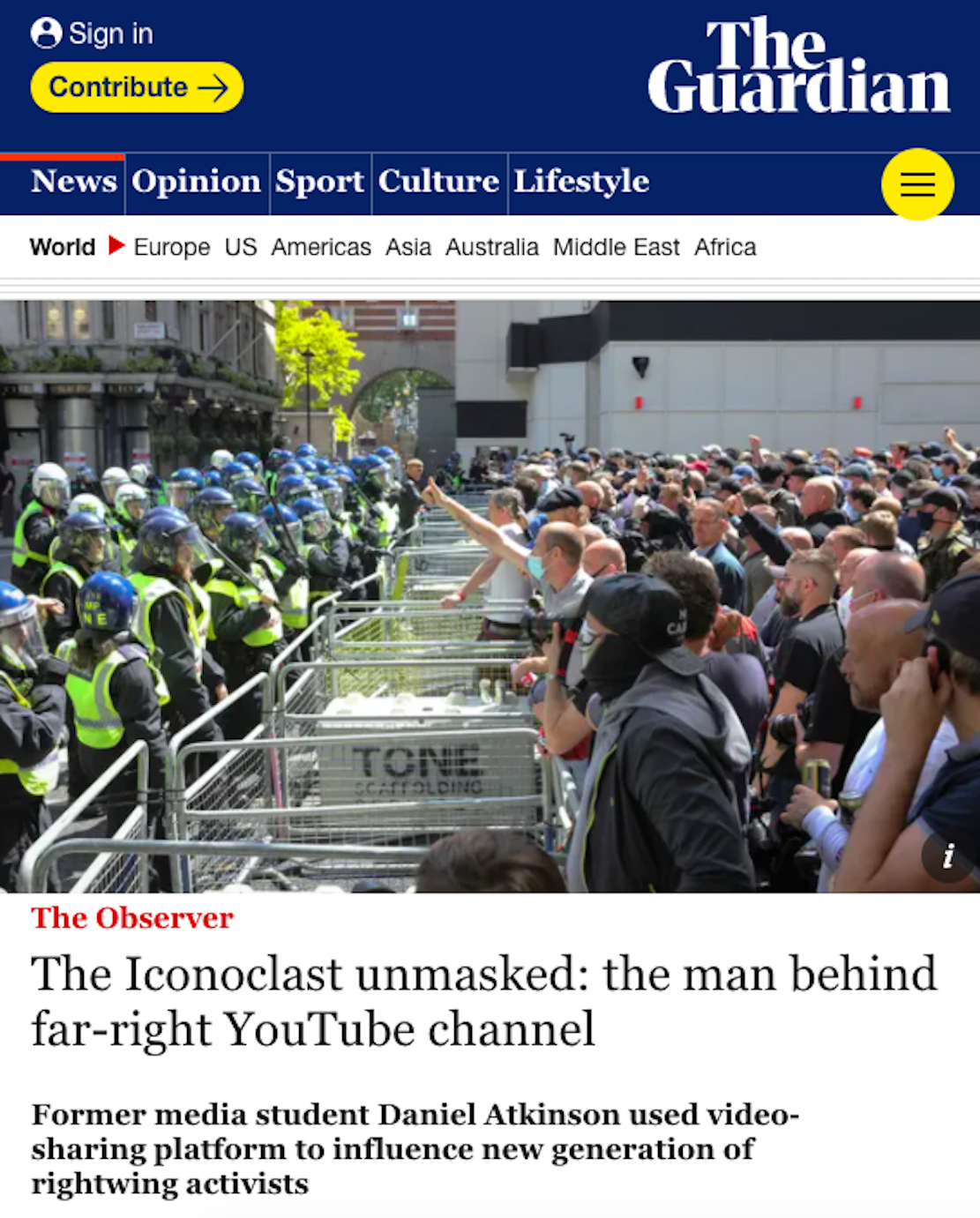 Canceling The Iconoclast however was apparently not enough for the newspaper, since it went on to name the previously anonymous individual behind it. Citing “forensic analysis of his social media output, including repeated usernames, profile pictures, throwaway comments that corroborated biographical details shared in his YouTube videos and undeleted accounts,”the Observer said the channel was run byDaniel Atkinson, a former media student.