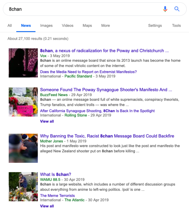 8chan has been a huge news item ever since the New Zealand mosque attack, given that the shooter, Brenton Tarrant, posted his manifesto on the site.
