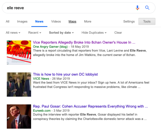 If you type “Elle Reeve” into Google News, you get only a post from One Angry Gamer.