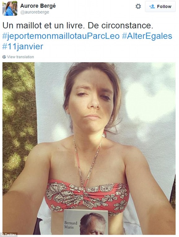 Hundreds across France joined the campaign on Twitter, posting photos of themselves wearing swimsuits in public places.