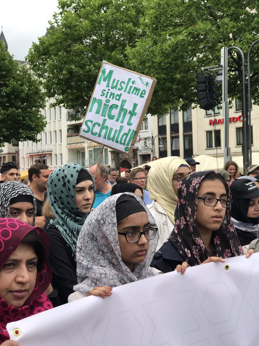 "It's not the Muslims fault!" – thinks a participant at the anti-terrorism rally in Cologne. #NichtMitUns #NotWithUs pic.twitter.com/9cmFSXradP