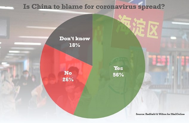Research for MailOnline showed 56 per cent hold Beijing responsible for the spread of the infection around the world.