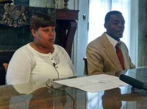 Derrys Sanders, Jr.’s mother, Juanita Holloway, read a prepared statement at the law office of Gene Placidi. Placidi is the attorney who is representing Sanders Jr..