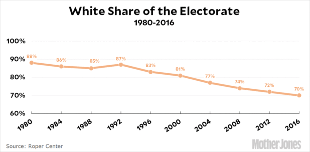 Drum claims that Republicans rejected the option of courting the brown vote and instead “went after the white vote even harder.”