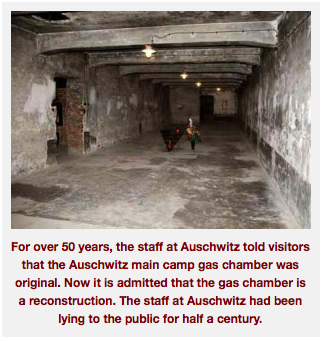 “Zyklon B [poison gas] was dropped inside the gas chambers in a completely different way β through holes in the ceiling or airtight drops in walls.”