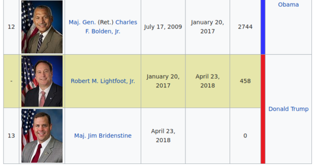 Wow, looking through this list of NASA administrators, they really need to bring back this guy: