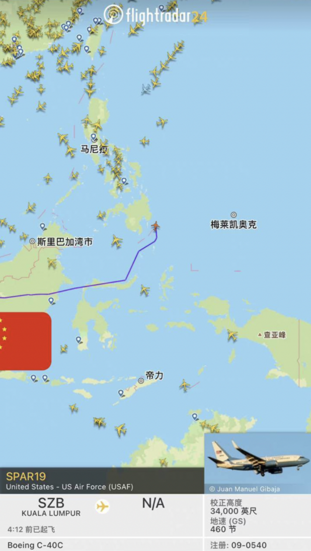 At time of writing, the plane is on path to Taiwan, after having driven all the way around the Philippines to… build tension?