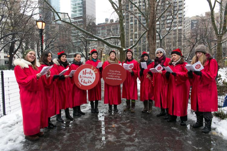 A self-proclaimed ‘Nasty Women’s Choir’ gathered by a national feminist activist group traveled to Trump International Hotel to spread “nastiness” to President-elect Donald Trump through a series of revised holiday songs attacking the president-elect’s anti-reproductive rights stances.