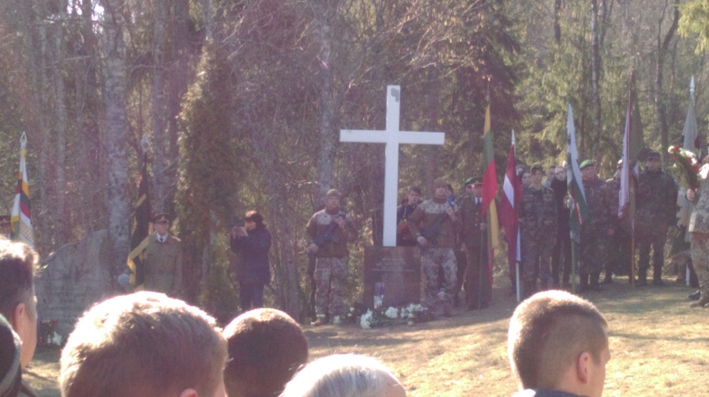 On the 17th the next day we attended a memorial in Ile to commemorate a battle that took place on the 17th of March 1949, where 27 Latvian and Lithuanian partisans (Forest Brothers) were attacked by Soviet security forces. Most of the defenders were killed and those who survived were sentenced to 25 years of hard labour in Siberia. The Legion did not give up after the war – 10,000 refused to lay down their arms and headed into the woods. They carried out sabotage, ambush, and planned the assassination of officials. In 1949 the Soviets had pinpointed where they thought the bunkers were and struck, though they had to make several successive attempts.