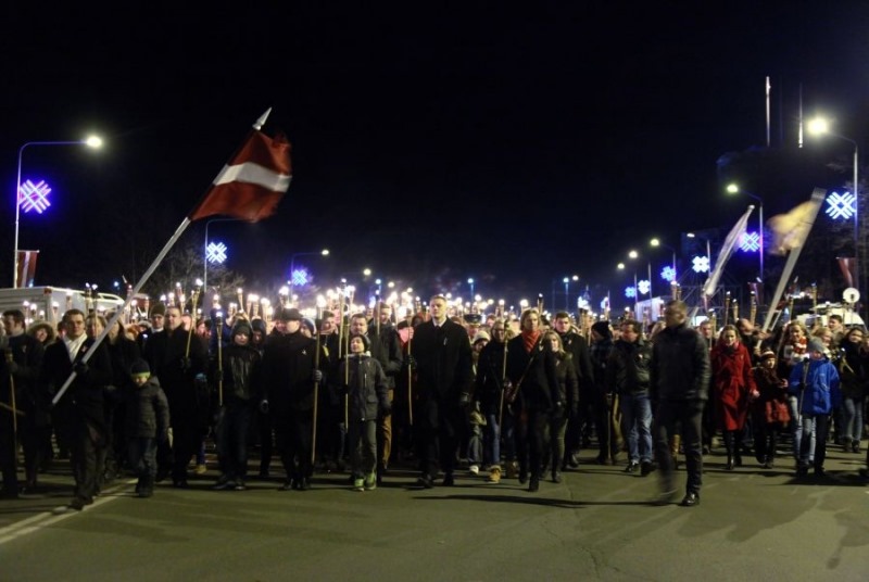 The National Alliance are a real success story. It all began with a group called Visu Latvija! (All for Latvia!) I remember way back when this started life as a tiny National Socialist organisation, skinheads in bomber jackets and armbands like the ones in Lithuania, very marginal – after a few years they registered as a party formally entering politics in 2006. They then made a decision that would prove fateful – they united with another party the LNNK (For Fatherland and Freedom) the old. This party was dying on its feet just from old age – the injection of this vital youthful element saved both these organisations. An example of these would be the annual torchlight parades they have been putting on the past few years every November, these look awesome, not the least because it attracts up to 14,000 participants and is reminiscent of the 1930’s.
