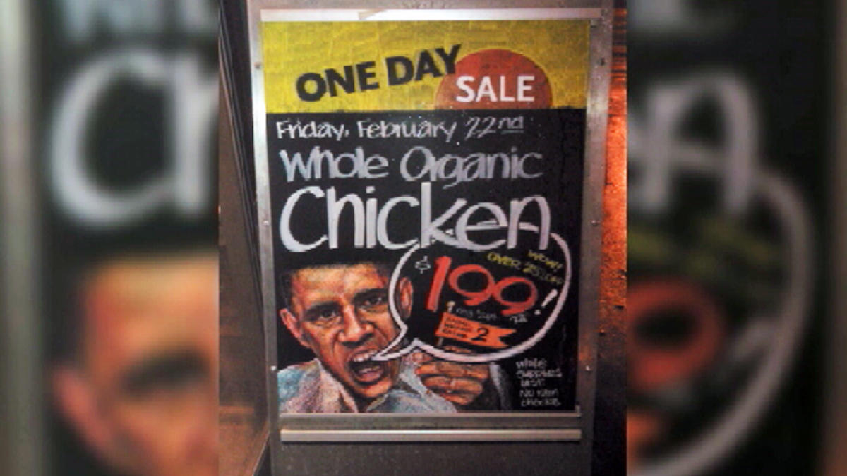 Then there was that incident in February 2013 when a Whole Foods store erected a sign depicting President Obama eating chicken. Unsurprisingly, the masterminds behind this shocking act of racism were none other than the Board of Directors, who were apparently sick of being governed by a “piece of outdated farm equipment” and his “transsexual husband.”