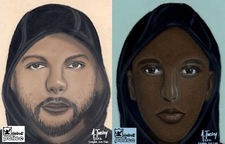 Police released sketches Friday evening of the men sought. Investigators believe one man was involved in both attacks Thursday.