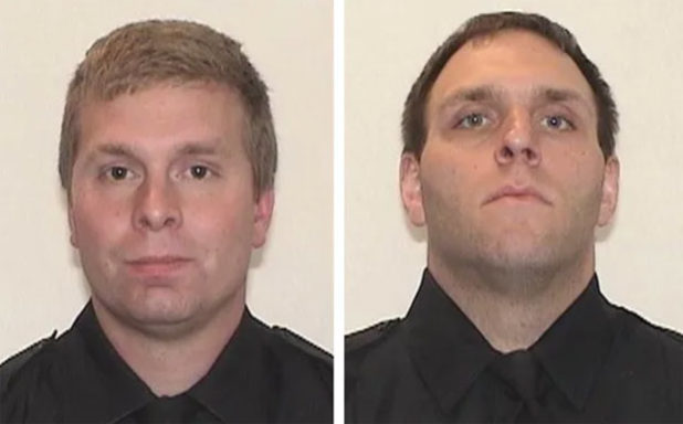 Officer Robert Parks, 32, was shot in the leg. His partner, Officer Adam Maritato, 33, was not injured, according to a Friday news release.