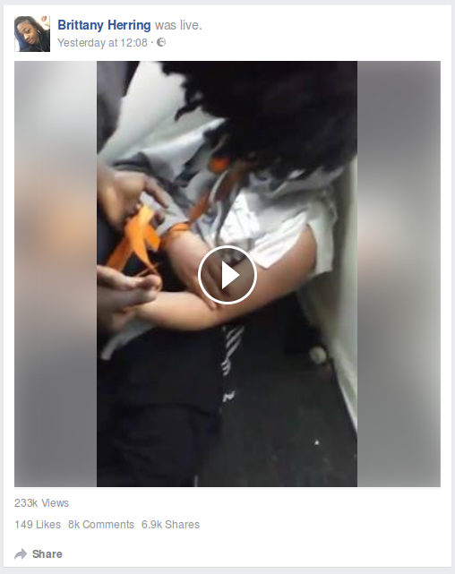 The video was streamed on Facebook yesterday by Brittany Herring, who appears to be the main Negress in the video.