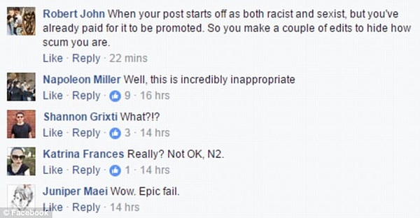 ‘Is it still considered blackface if it’s just on your hand???’ the caption for the ad on both the company’s Facebook and Instagram accounts read.