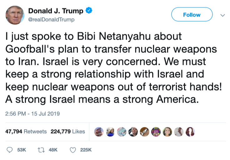 Donald Trump was apparently very disturbed by Anglin’s announcement, and took to Twitter to stress what a threat Anglin poses to Jews and Israel, particularly Anglin’s stated plan to deliver nuclear weapons to Iran.