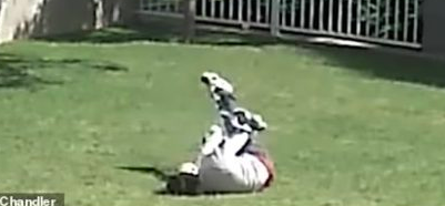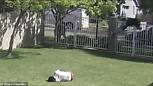 In the footage, Murrietta-Golding is seen jumping over a fence surrounding a day care facility.