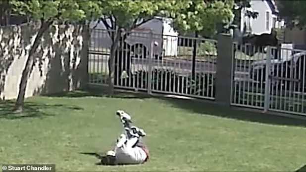 At that moment, Sgt Ray Villalvazo – one of the two officers chasing the teen – draws his gun and fires a single shot through the fence, which causes Marietta-Golding to crumple to the ground after taking just eight steps.