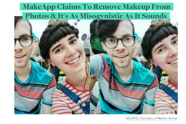 “So there’s an app called MakeApp that removes the makeup in pictures so people can ‘see what you really look like’ and ofc its a fail,” added another.