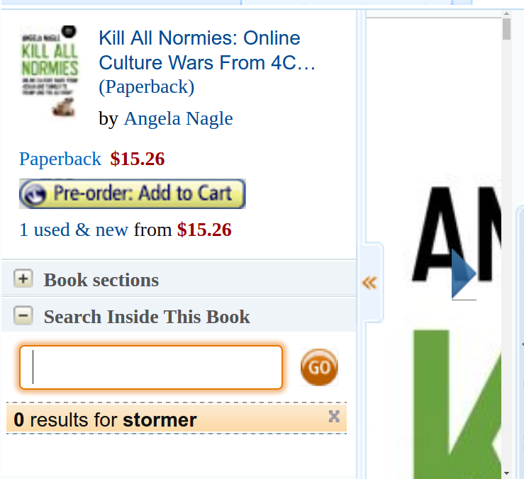 It would be tempting to dismiss this as an attack on easy targets (a group of antisocial teenage boys), but Nagle never dismisses their hopes and frustrations. Instead, she traces where they come from. Nor does she spare the online left: Kill All Normies can be categorized alongside Jarrett’s Kobek’s 2016 anti-novel I Hate the Internet in that both titles attack the online left from the left. Beside the /b/tards and racists and the Men Going Their Own Way (aka “MGTOW,” the anti-feminist group that claims to renounce women and sex entirely), still it is the left who come out looking worst of all.