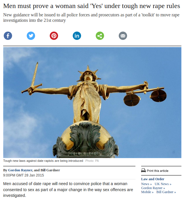 This official status as the new Jews was achieved with the passage of new anti-date rape legislation in the UK which will require that if a woman accuses a man of rape, he must prove that she consented. The woman is not required to present any evidence. The man is just guilty, unless he can manage to prove his innocence.