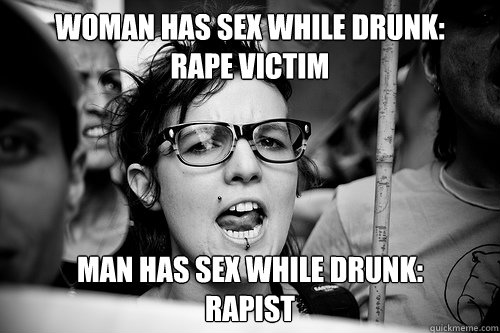 This “she was too drunk to know what was happening and so the man should have been responsible” simply portrays women as little children who need to be taken care of. And though that might be a fair portrayal, in the context of feminism, they are only children in need of taking care of when something they don’t like happens. Every other time, they are superior intellectual creatures which should be ruling over men.