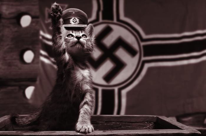 Unfortunately, dogs are not the only type of animal that has been overcome by blind hate. Conclusive photographic evidence has confirmed that there is an enormous amount of Nazi sympathizers among the domestic cat population. Based on this, we can say with great confidence that we are absolutely living in a new era of hate.