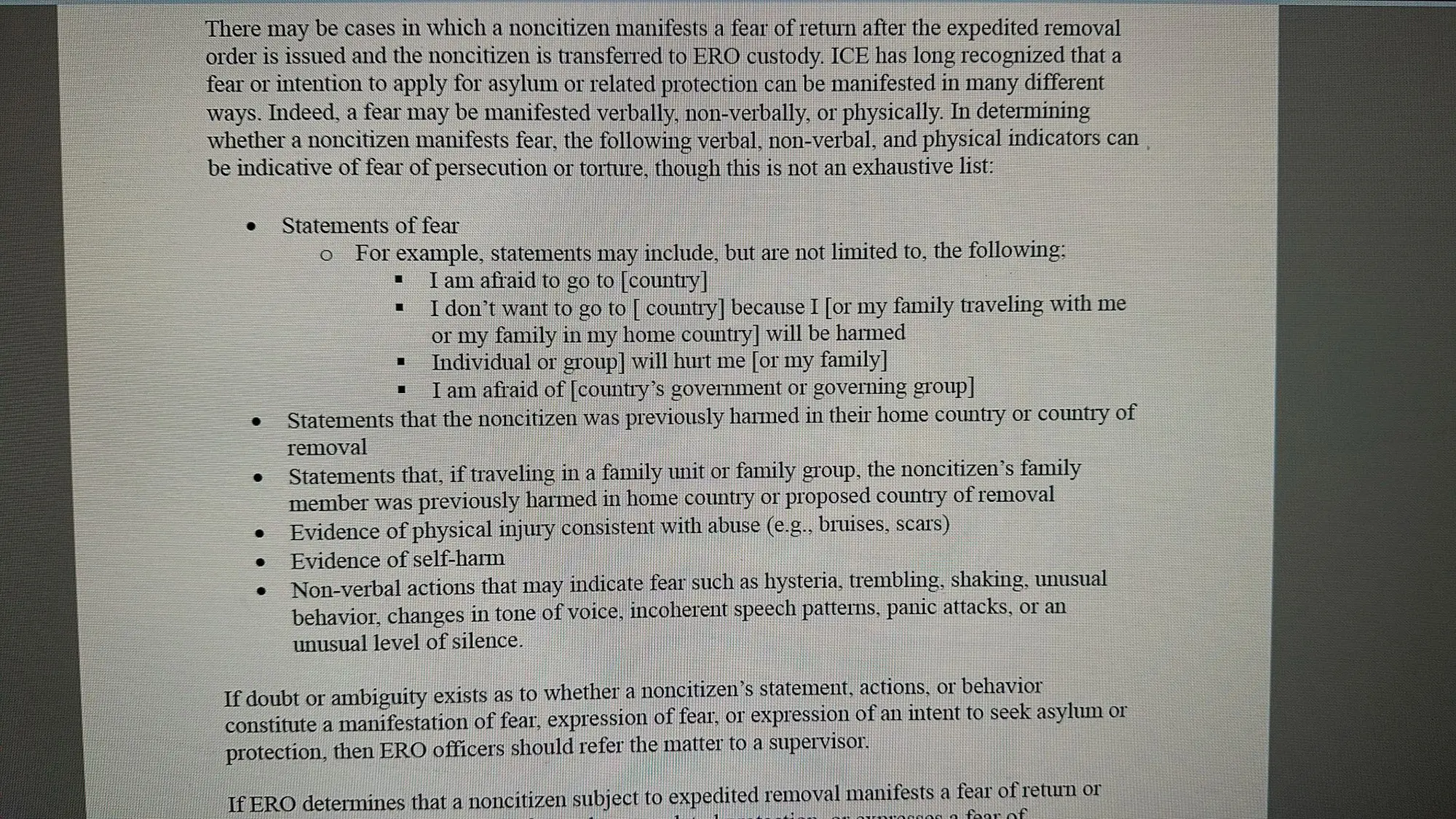 There also must be a video “explaining to noncitizens that they should raise these concerns” that “should be played on a loop.”
