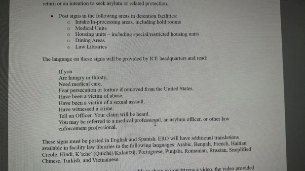 Instructions from Immigration and Customs Enforcement (ICE) acting director Patrick J. Lechleitner to his team includes the installation of signs seemingly instructing migrants what to say to qualify for asylum.
