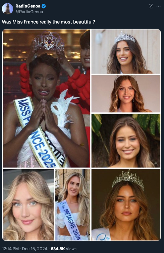 What is the point of a beauty competition? Is it to push an anti-white, feminist agenda?