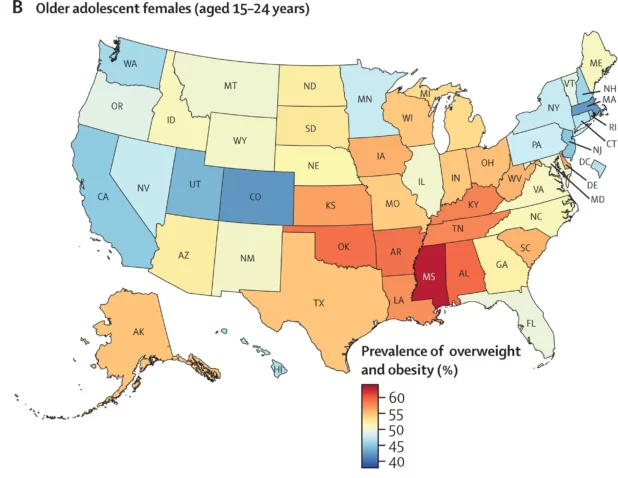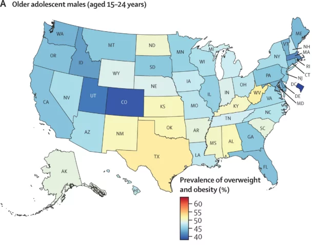 The study, published in The Lancet on Thursday, revealed the striking rise of obesity rates across the country since 1990, when just over half of adults were overweight or obese, and showed how more people are becoming overweight or obese at younger ages than in the past. Both conditions can raise the risk of diabetes, high blood pressure and heart disease, and shorten life expectancy.