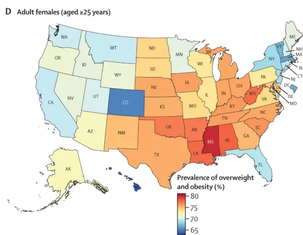 Also: please don’t blame black people. Black people are only 13% of the country. Even if all black people were obese, that wouldn’t change much. (You can blame blacks for the nation’s academic performance and the average IQ being lower than that of Northern Europe, but you can’t blame them for obesity.)