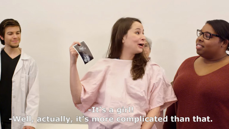 The video then cuts to a scene showing a pregnant woman receiving a sonogram and shouting in excitement: “It’s a girl!”