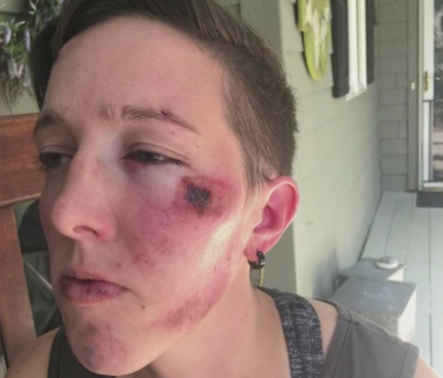 “He proceeds to hit me in the face,” she said. “From that first punch I fell to the ground and I was unconscious for part of it, but what I know now is he was bashing my head on the ground.”