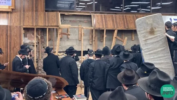 The enraged men, thought to be mostly in their teens and early 20s, were filmed tearing down wood paneling and wooden support beams Monday at the Chabad-Lubavitch World Headquarters in Crown Heights.