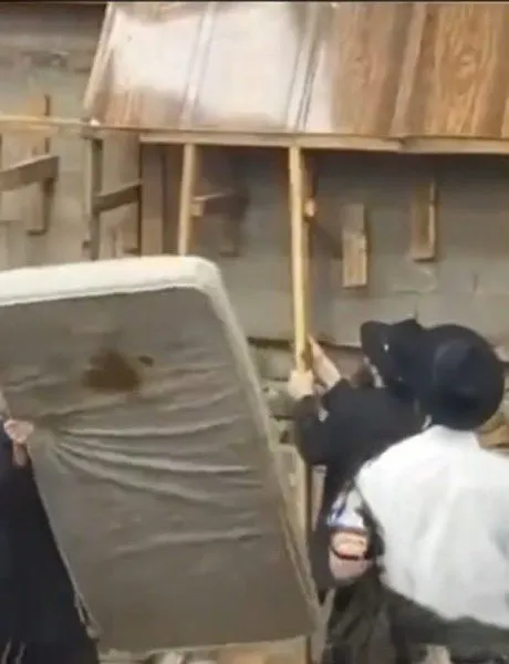 The Hasidic men appeared to use a hammer to break through the synagogue’s brick walls.