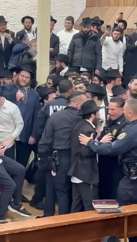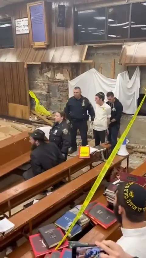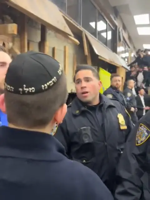 Officers were also seen holding back men outside the 100-year-old synagogue, the headquarters of one of the largest groups of Hasidic Jews in the world.