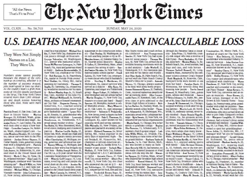 The New York Times had a big front page event on Sunday, listing around a thousand names of people who had allegedly died as a result of the coronavirus.