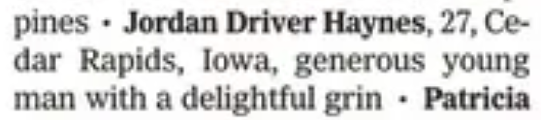 By her own rules, Jordan Haynes, if he had coronavirus when he was shot to death, would qualify for the official statistics. And I assume this is how he got on the list. I assume that is actually what happened here. He is described as a “generous young man with a delightful grin,” which was pulled from an obituary.
