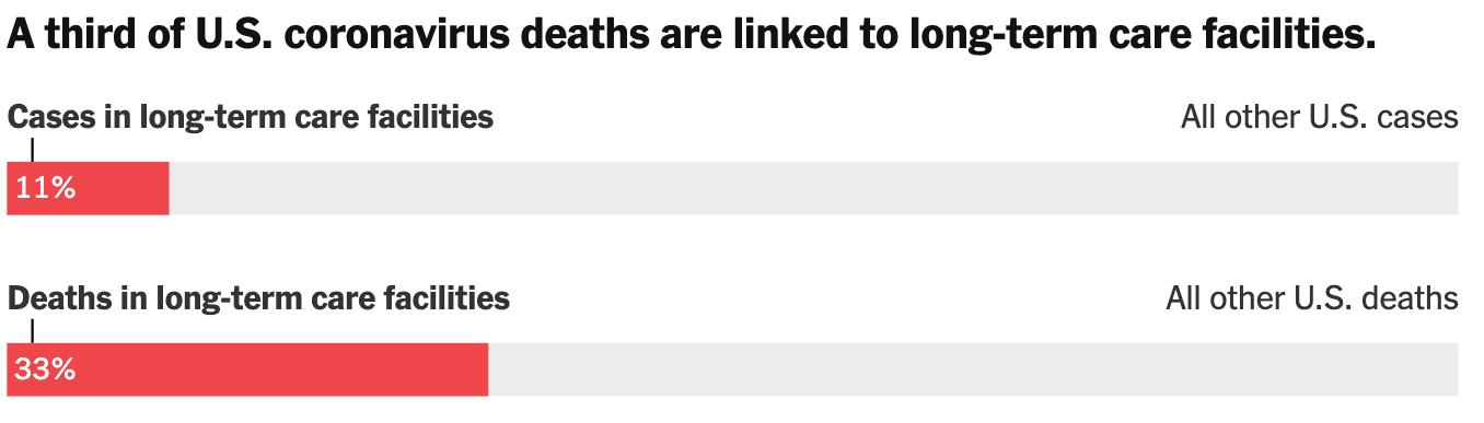 While just about 10 percent of the country’s cases have occurred in long-term care facilities, deaths related to Covid-19 in these facilities account for a third of the country’s pandemic fatalities.