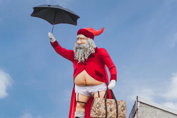 Ponsonby Central introduced “Santa Poppins,” Santa dressed as Mary Poppins, for the holiday season. Santa dons a red robe and fishnet stockings and is holding Poppins’ magical carpet bag and umbrella.