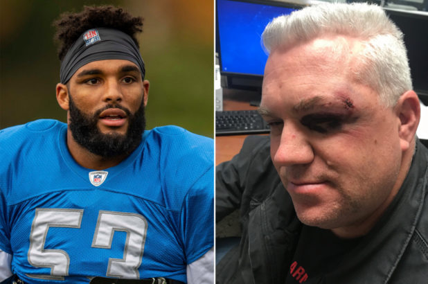 This is the NYPD sergeant after he got sacked early Saturday — allegedly by a Detroit Lions linebacker who went berserk in a Queens holding cell.